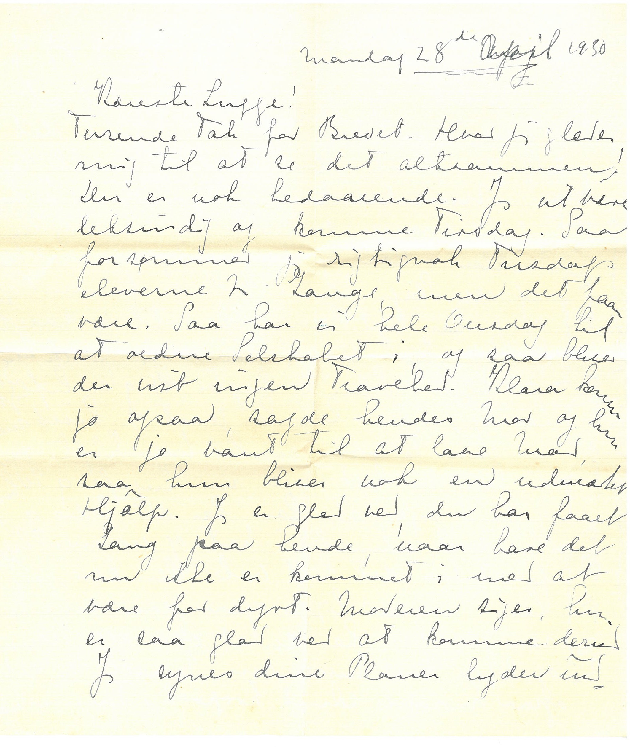 Mandag 28de April 1930 [Der er skrevet noget oven i ordet "April" - muligvis Maj]