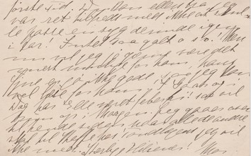 Mange Tak til Dig og alle tre Piger for Eders kære Breve til d: 20de. Nu er jeg helt i Orden igen og kan rejse med paa Onsdag, men jeg tager vist ikke fra Caspersens den første Tid. Du kan ellers tro jeg var ret tilfreds med ikke at skulle passe en syg derinde igen i Aar! Intet saa galt o s v! Men nu vil jeg jo gærne være det mest mulige for ham, hans Øjne er jo ikke gode, saa jeg kan vel læse for ham. I Gaar og i Dag har Elle været feberfri! saa vil hun op i Morgen. Jeg gaaer over til hende siden, naar alle andre skal til Kaffe hos Tandlægen jeg vil ikke med. Kærlige Hilsener! Mor