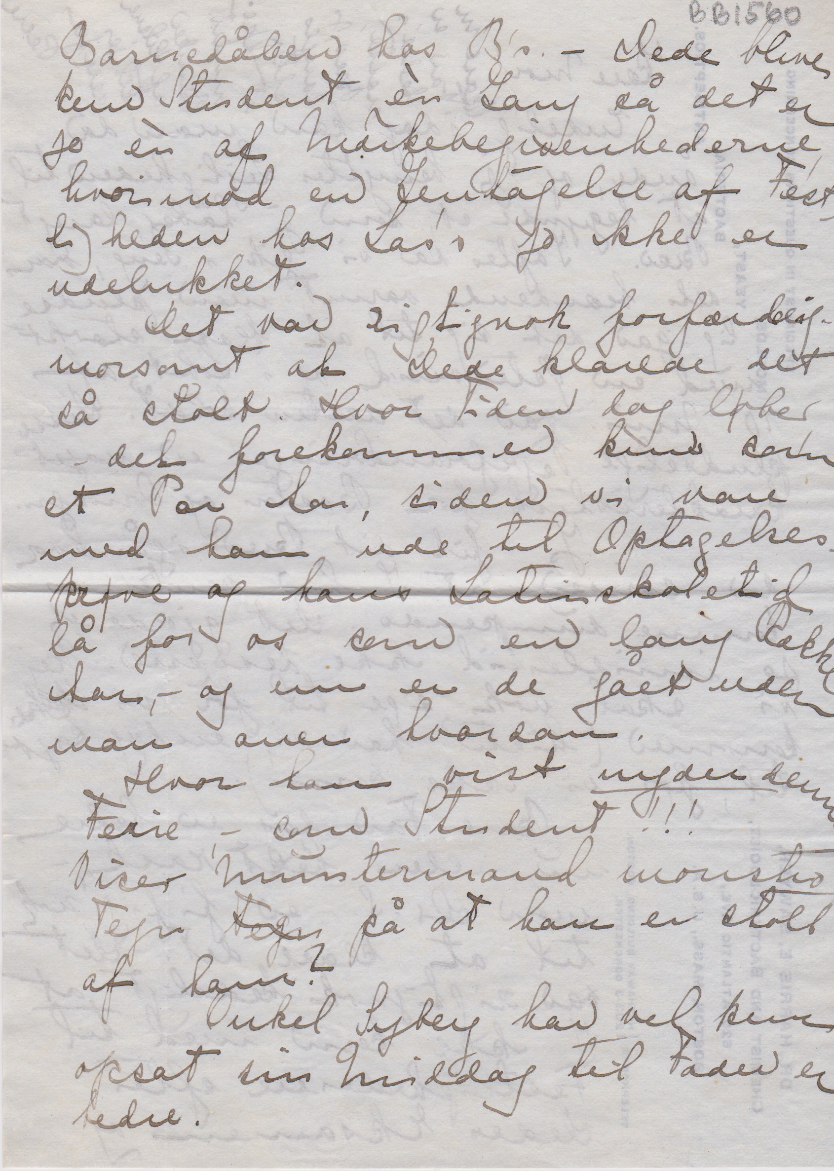 Det var rigtignok forfærdelig morsomt at Dede klarede det så stolt. Hvor Tiden dog løber – det forekommer kun som et Par Aar, siden vi vare med ham ude til Optagelsesprøve og hans Latinskoletid lå for os som en lang Række Aar, - og nu er de gået uden man aner hvordan.