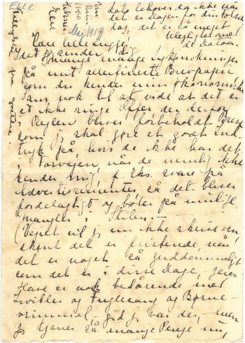 [Indsat øverst s. 1:] Dato behøves da ikke når det er Dagen før din Fødselsdag, - det er så meget Ulejlighed med de Datoer.