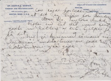 I 1901 var Ellen Sawyer med familien i Danmark. I dette brev skriver hun, at de ikke kommer nogle steder "i år". Da brevet blev skrevet, boede Ellen, Harris og Grethe Sawyer stadig sammen med hans familie. De flyttede maj/juni 1902.