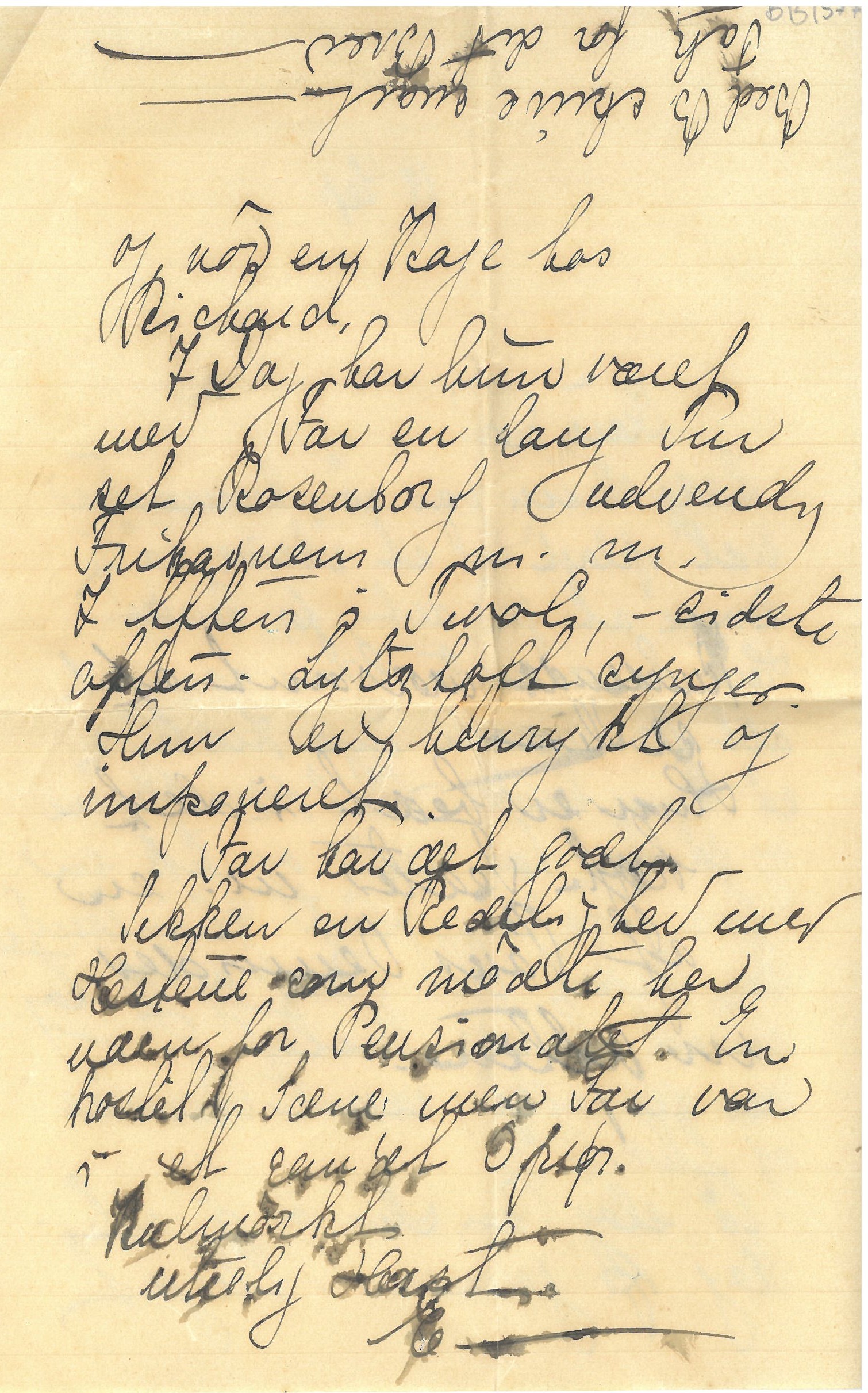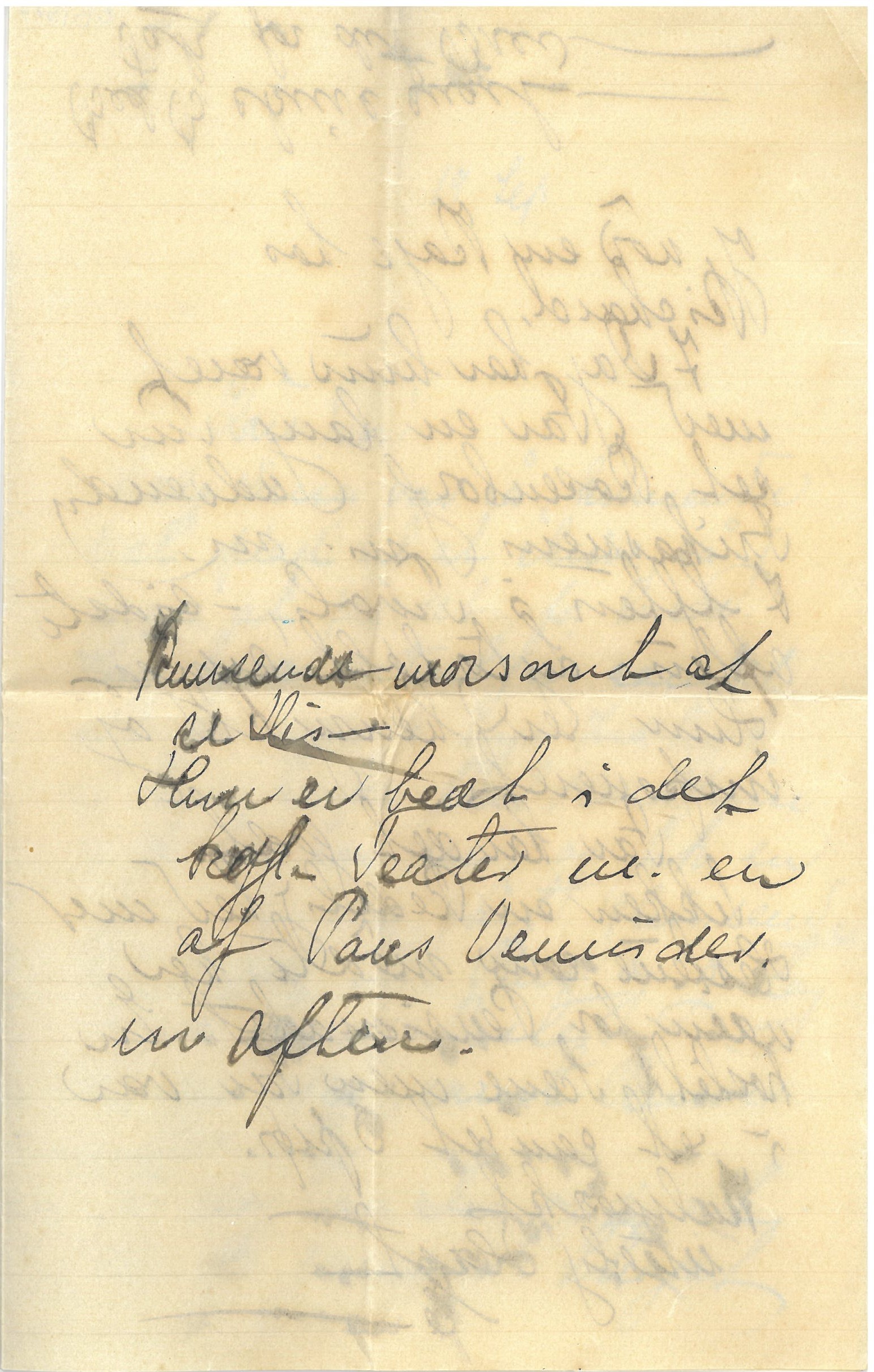 Det er tænkeligt, at brevet er skrevet 1896 eller 1897, hvor Johanne/Junge C. Larsen arbejdede på sin mosters pensionat i København.