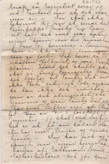 Jeg har fået Fragtbrevet eller hvad det skal kaldes i Dag og begynder nu snart at vente mine Kasser. Det bliver knusende morsomt, - især hvis det går godt med Tolden. Du har rigtignok haft en rasende Besvær med det og det er ikke så sært at det har spillet en Rolle for dig. Det varer dog vist et Par Uger før det kommer. Thingvalla er jo lidt sen i Vendingen. Jeg skal nok skrive hvordan det er gået med Tolden ligeså snart det kommer. Eastman er knap så begejstret som jeg ved Tanken om at det nærmer sig. – Du skal ikke bekymre dig om at sende det Sengetæppe. Måske Mr. Pray vil tage det med, når han rejser hjem om tre Måneder.