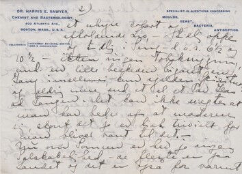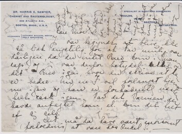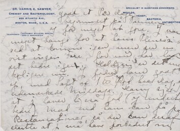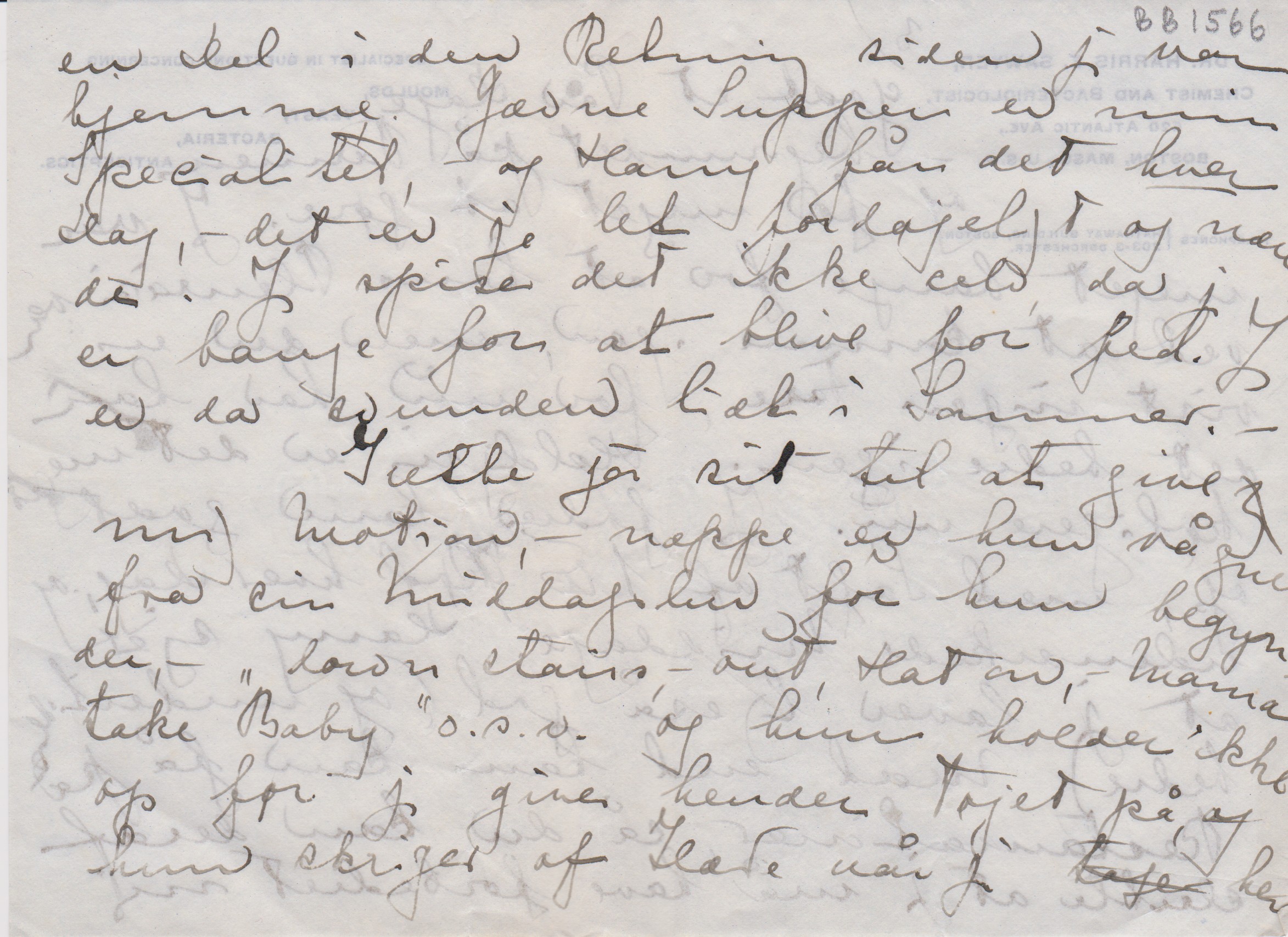 godt et Par Dage – begrundet på Varmen og for meget at gøre. Jeg var meget bange for at hans Pleurity var ved at komme igen, men der er vist ingen Fare, for nu har han det bedre igen. Heldigvis er det mere køligere nu. Jeg fodrer ham godt op, med Saft af 1 Pund Kød hver Dag, og udmærkede Middage. Harry siger at jeg laver ligeså god (og undertiden bedre) Mad end han kan få på Restaurationer, så du kan deraf slutte at jeg må have forbedret mig en Del i den Retning siden jeg var hjemme. Jævne Supper er min Specialitet, og Harry får det hver Dag, det er jo let fordøjeligt og nærende! Jeg spiser det ikke selv, da jeg er bange for at blive for fed. Jeg er da svunden lidt i Sommer. –