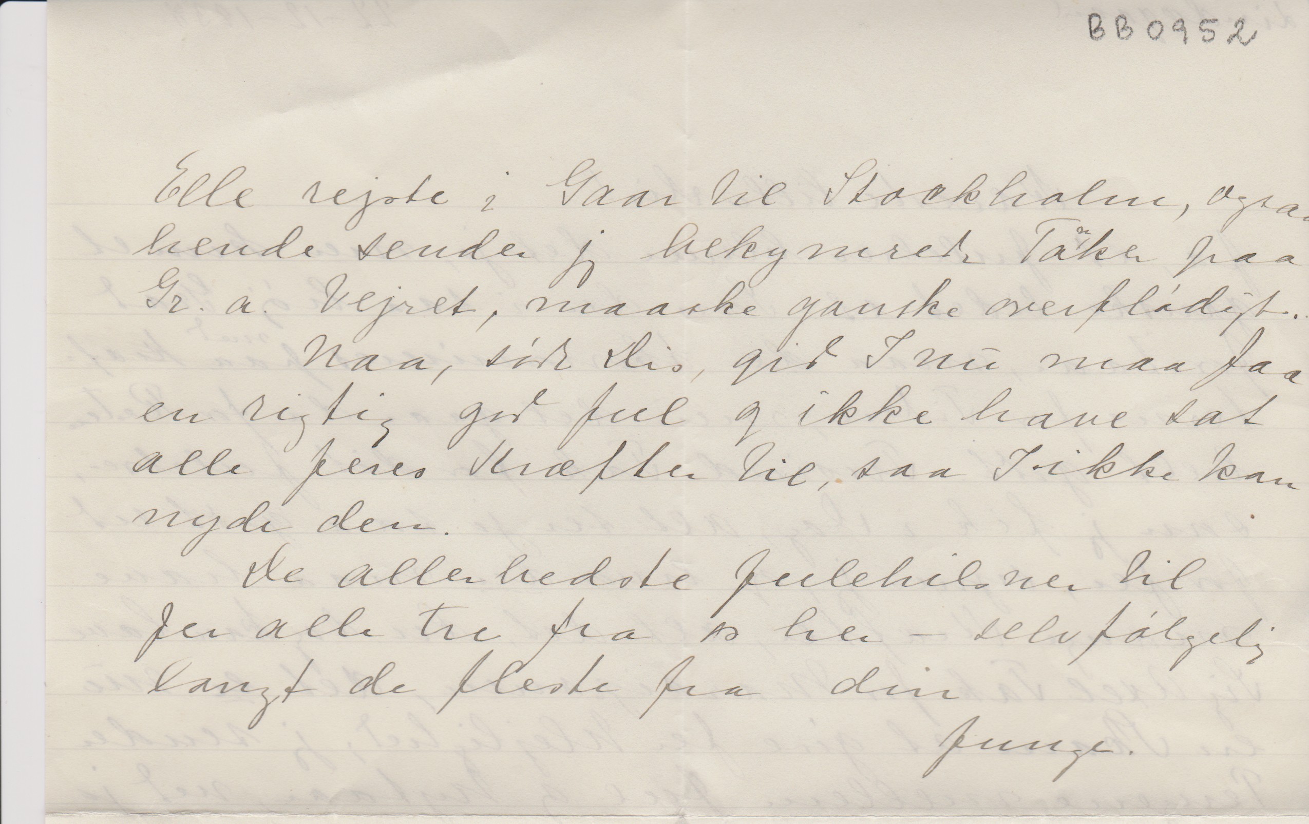 Elle rejste i Gaar til Stockholm, ogsaa hende sender jeg bekymrede Tanker paa Gr. a Vejret, maaske ganske overflødigt.
