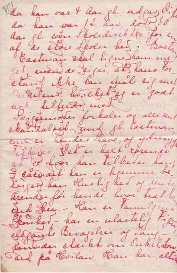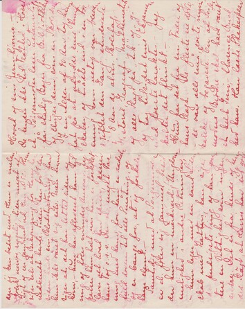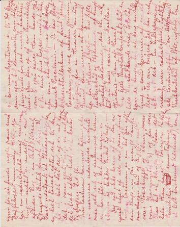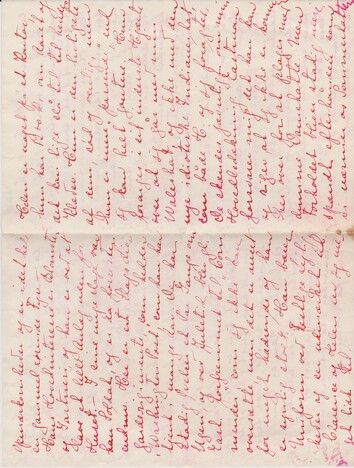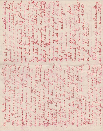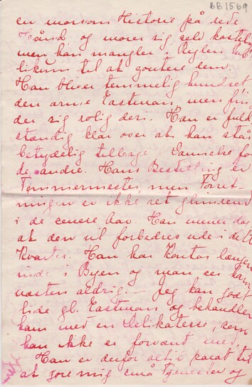 Du kan ikke tænke dig, hvor dine Breve ere velkomne, - jeg sluger dem. – Jeg er virkelig ulykkelig over at mine andre Breve have været indholdsløse og små – dette er da til Gengæld fedt. – Jeg har også idag haft Brev fra B., Dis og Dede. Tak dem på det hjærteligste. Jeg er helt vild på sådan en Dag. –