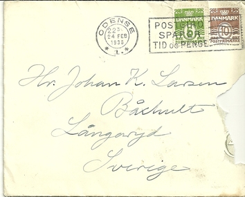 Bynavnet er skrevet øverst s. 1 og er også skrevet bag på kuverten
