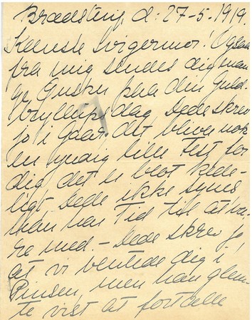 Brædstrup, d. 27-5-1919.