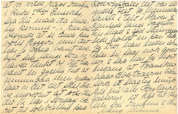 Kæreste Svigermor! Ogsaa fra mig sendes dig mange Ønsker paa din Guldbryllupsdag, Dede skrev jo i Gaar; det bliver nok en yndig lille Fest for dig, det er blot kedeligt Dede ikke synes han har Tid til at være med. - Dede skrev jo, at vi ventede dig i Pinsen, men han glemte vist at fortælle at vi vilde have Drengen i Kirke 2_den_ Pinsedag, saa du maa da endelig komme. - Vi kan nu begynde at se Ende paa vores Byggeri, men det har jo ogsaa varet dobbelt saa længe som vi havde tænkt os, det har været en gyselig Tid at gennemgaa, men yndigt faar vi det, det skal blive morsomt at vise dig det. Vi har i Søndags været til Sølvbryllup paa Rødvigsballe, det var en yndig Fest, 80 Mennesker, spiste i Telt i Haven & dansede længe bagefter. Fin Mad & god Stemning. Dede holdt en pæn Tale, jeg tror, han ender som Taler. Du faar nok godt Vejr, & saa har jeg hørt engang, at Tranekær, - naar Æbletræerne blomstrer, er prægtig smuk. Hils nu alle Bryllupsgæsterne, et Kys til dig selv fra Drengene & din heng. Minna.