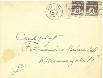 Og tænk dig, vi har Håb om hele Agrarfamilien i Påsken - Mændene skal bo hos Uglens, Junge nødvendigvis hos os - endnu tør jeg næsten ikke tro på så stor en Lykke. Gid du kom! Din Dis.