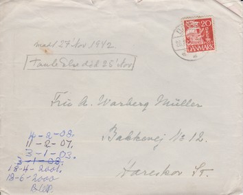 [Skrevet med blå kuglepen på kuvertens forside:]