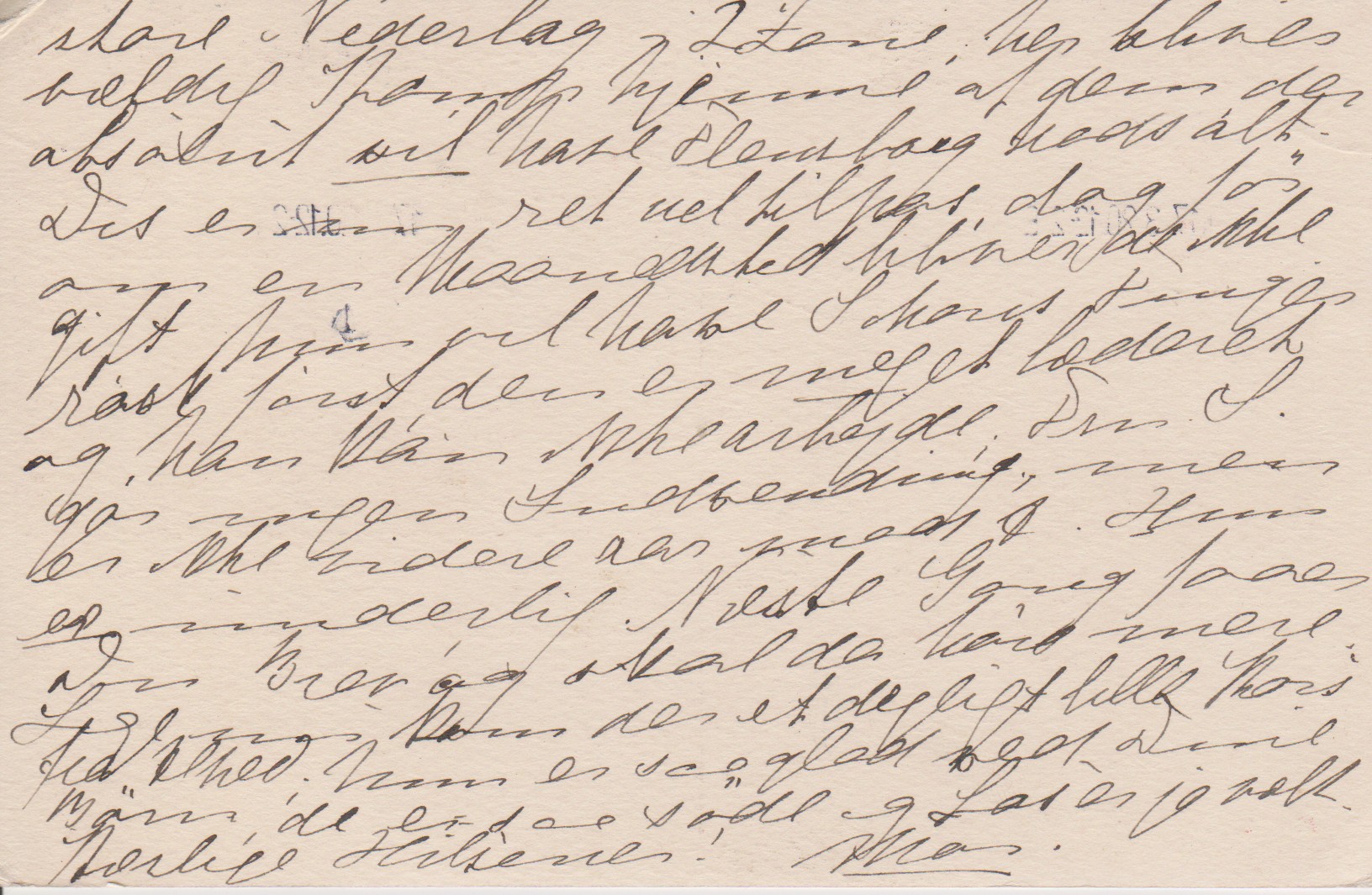Det var vist en slem Overfart, her blæste det meget, men Vinden var vel god nok. Alt vel her! I ser vel danske Aviser og veed om det store Nederlag i 2 Zone, her bliver vældig Kamp hjemme af dem der absolut vil have Flensborg trods alt. Det er mig ret vel tilpas, dog før om en Maanedstid bliver de ikke gift hun vil have Schous Finger rask først, den er meget læderet, og han kan ikke arbejde; Fru S. gør megen Indvending, men er ikke videre rar mod A. Hun er underlig. Næste Gang faaer Du Brev og skal da høre mere. Lige nu kom der et dejligt lille Kort fra Alhed; hun er saa glad ved Dine Børn, de er saa søde og Las er jo væk. Kærlige Hilsener! Mor.