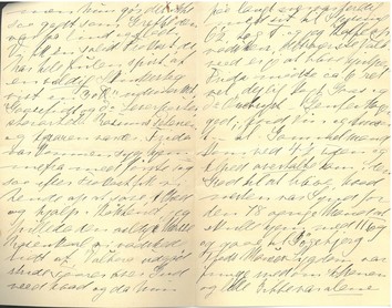 Jeg var glad ved de smaa Skrivelser fra Eder i Morges! Nu skal Du have en lille Beretning om i Gaar. Trods Sne og Storm og Kulde var jeg om Formiddagen et Par Ærinder, købte den eneste Smør-Kande Byen ejede at give Las, da han er saa gal i Hovedet fordi Frida aldrig giver dem smøreligt Smår paa Bordet; enten som en Sten saa vi maa lægge det paa Brødet, - jeg har nu 3 Gange prøvet dette - eller smeltet og størknet igen. Nu har jeg sagt hende at en Smørkande med Laag kan hun altid have staaende i det lune Køkken og at vi her aldrig har skilt Smør. Hun er en Sjuske! Efter mine faa Ærinder var jeg hos Spies med en Obligation fra Dede paa mine 3000, som nu er frigivet af Agrarens og som Las gærne vil laane og give mig 5 % bekomst, da de kan gaae af paa Huslejen. - Derfra hjem og sammen med Anna til Las's med Genferkagen som A. glasserede deroppe, men hun gør det ikke saa godt som Grethe den var for lind og flad. Vi fik en solid Frokost, de har hele Julen spist af en vældig Skinkesteg vist en 30 Pund!! udmærket; Gaasefedt og d_o_ Leverpostej, storartet. Rasmus Petersen og Agrarens var der. Frida var kommen syg hjemmefra med første Tog saa efter Frokost fik vi hende op at sove, Alhed og hjalp i Køkkenet, jeg pillede den vældige Kasse Rosenkaal, vi vadskede lidt af, Valborg udgød stride Taarer over Gud veed hvad og da hun saa langsom var færdig med sit til Spisning 6 1/2, tog A og jeg Kaffeopvadsken, det værste Valb. veed er jo at blive hjulpen, Frida mødte ca. 6 ret vel, dejlig kogt Grød og d_o_ Oksebryst - Genferkagen god; hvid Vin og A[ulæseligt] til. Gammel Mand kom ved 4 1/2 Tiden og Alhed overtalte ham i den Grad til at blive, hvad næsten var Synd for den 78 gange Mand at skulde hjem med 11.Tog og gaae til Bøgebjerg. Trods Manses Sygdom var Junge med om Aftenen og lille Bibbe var alene hjemme med M. som var vaagen hele Aftenen og legede i sin Seng i Dagligstuen, Grethe bedt ud og Ingrid desværre hjemme og syg endnu i Dag, svære Juledage for Johanne, men Marie overgaaer ["overgaaer" overstreget] overgaaer sig selv og hjælper; Agraren ogsaa. Marie fulgte mig hjem i Aftes og Anna havde jeg bedt om at være her Kl. 10 og have Dunk i min Seng. Det var en yndig hyggelig Dag for mig deroppe. Jeg er helt glad ved nu igen ligesom 2_den_ Juledag at være ene hele Dagen. Anna er allerede klædt om og sidder herinde og læser til vi Kl. 12 skal spise Oxesteg og Sødsuppe saa skal hun hjem til deres Gæster fra Odense. Tænk hun kom i Aftes med 3 Pund store Rødspætter fra sin Far, dem skal vi have stegte i Morgen tilligemed Oxesteg, Kartoffelsalat, Sild i Remolade m.m. Pouline L. har meldt sig til Johanne og jeg er glad ved at faae hende med herned i Morgen Aften; vi bytter Bordene og kan saa spille lidt Kort bagefter, vi bliver 10 med Anna; jeg glæder mig til en Smule fremmede. Det var saa sødt i Aftes da vi havde spist at Putte af sig selv gik over til Bibbe, Herbert gik med; de to skal naturligvis med her, men Erik og Bibbe maa jo blive hjemme hos Manse. Vi talte saa meget om i Gaar, at Du burde tage Ferie som alle andre med Skolerne men i hvert Fald til Søndag, saa Du kan rejse 2 1/2 fra Kbh. og vi har Maaneskin at cycle i fra Nyborg. Lad mig nu endelig vide Dagen før Du kommer, saa vil jeg have Dine Sengeklæder i Dagligstuen om Natten før ["før" indsat over linjen] og Varme i Dit Sovekammer. Jeg har intet hørt fra Brædstrup efter Julen bare Penge og alt er kommen godt derop. Desværre mener Christine at Dede har Frits Jørgensen Paa Tirsdag kommer Drude og Sønnerne til Las's, saa skal jeg vist derop at spise men saa vil jeg være Nytaarsaften hos Agrarens; 1_ste_ Jan. bliver jeg vist ene hos Las's til H. Meier. Det var en Skuffelse at Dede ikke kom. [Resten af brevet mangler]