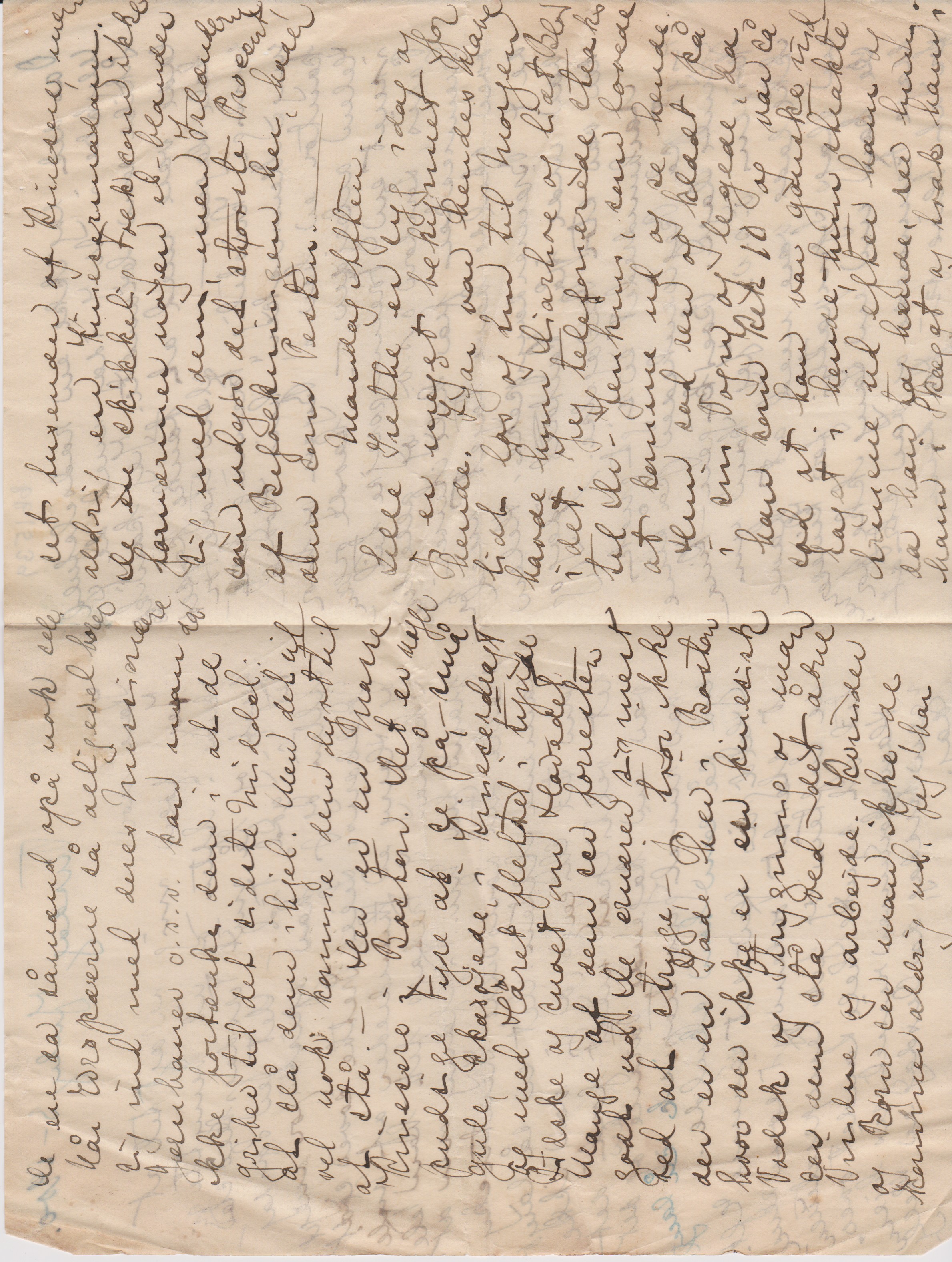 Aarhundredet er rigtignok rigt på Begivenheder på sine gamle Dage. Boerkrigen, – Kinakrigen o.s.v. Jeg kan nu ikke lade være med at have en Slags Sympathi for Kineserne. De kan nu en Gang ikke fordrage Fremmede og har stridt for at blive fri for dem. De ere da såmænd også nok selv når Europæerne så alligevel borer sig ind med deres Missionærere Jærnbaner o.s.v. kan man da ikke fortænke dem i at de griber til det sidste Middel: at slå dem ihjel. Men det vil vel nok komme dem dyrt til at stå. – Her er en Masse Kinesere i Boston. Det er nogle pudsige Fyre at se på, - små gule Skævøjede i Kineserdragt og med Håret flettet i tynde Pidske og snoet om Hovedet. Mange af dem ser forresten godt ud. De ernærer sig mest ved at stryge, - jeg tror ikke der er en Gade her i Boston hvor der ikke er en kinesisk Vadsk og Strygning og man ser dem stå ved det åbne Vindue og arbejde. Kvinder og Børn ser man ikke, de kommer aldrig ud. Jeg har set tusinder af Kinesere, men aldrig en Kinesermadam. De ere skikkelige Folk som ikke fornærmer nogen el. blander sig med dem, men Irlænderne, som udgør det største Procent af Befolkningen her, hader dem som Pesten. -