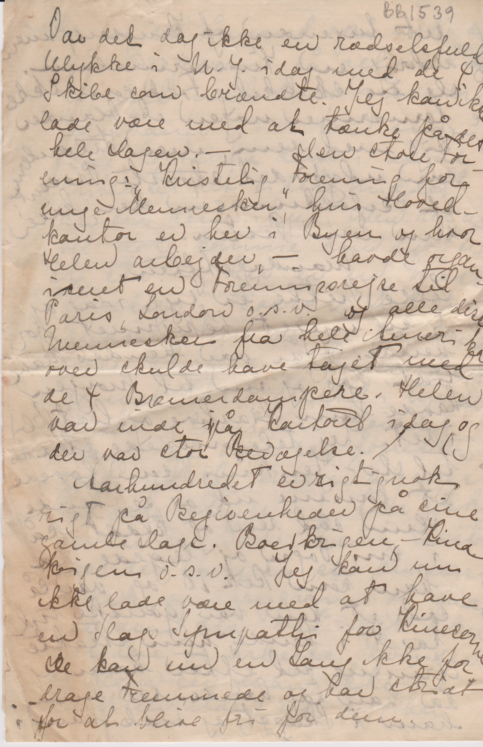 Var det dog ikke en rædselsfuld Ulykke i N.Y. idag med de 4 Skibe som brændte. Jeg kan ikke lade være med at tænke på det hele Dagen. – Den store Forening: ”Kristelig Forening for unge Mennesker”, hvis Hovedkontor er her i Byen og hvor Helen arbejder. – havde organiseret en Foreningsrejse til Paris, London o.s.v. og alle disse Mennesker fra hele Amerika over skulde have taget med de 4 Bremerdampere. Helen var inde på Kontoret idag og der var stor Bevægelse.
