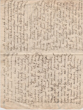 Jeg føler mig oplagt til at skrive i Aften og vil benytte mig deraf og få mit Tirsdagsbrev startet i god Tid. – Det er Søndag Aften og jeg har spist for meget Jordbæris, lille Grethe sover sødt og Harry er Hundreder af Mile herfra – I Fredags fik han Telegram fra Mr. Tiffany om at starte til Louisville, Kentucky samme Aften. Det er så langt som til Chicago, og jeg var jo ikke ret veltilpas, mest fordi det var en bagende Varme her [”her” indsat over linjen] og det var rimeligvis tropisk så langt syd på, som han skulde. Heldigvis blev det samme Eft. et stærkt Tordenvejr som rensede Luften og fik Temperaturen til at synke hele Landet over.Han kommer rimeligvis hjem igen Tirsdag, da Onsdag er Helligdag.