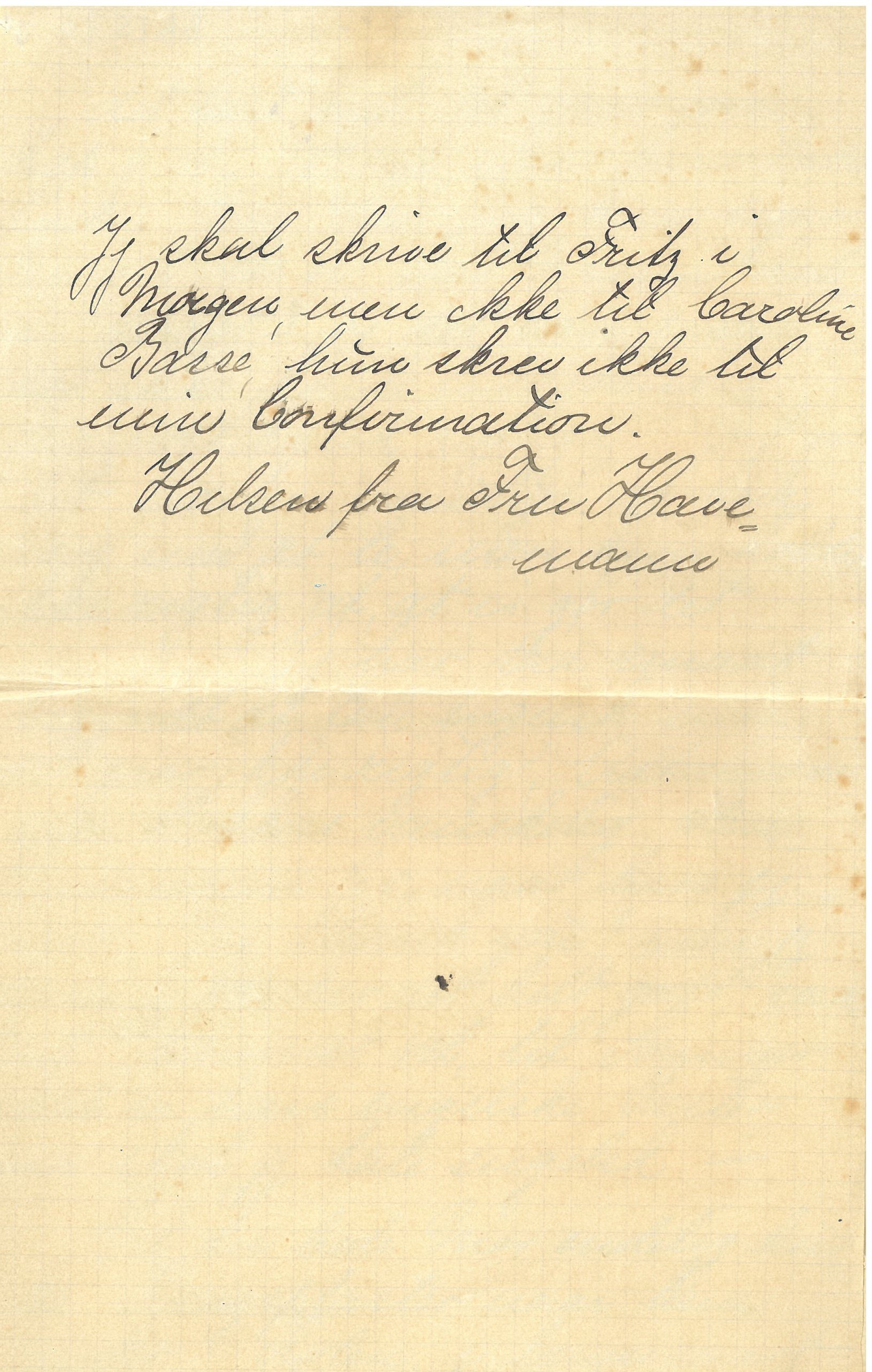 Jeg skal skrive til Fritz i Morgen, men ikke til Caroline Basse, hun skrev ikke til min Confirmation.