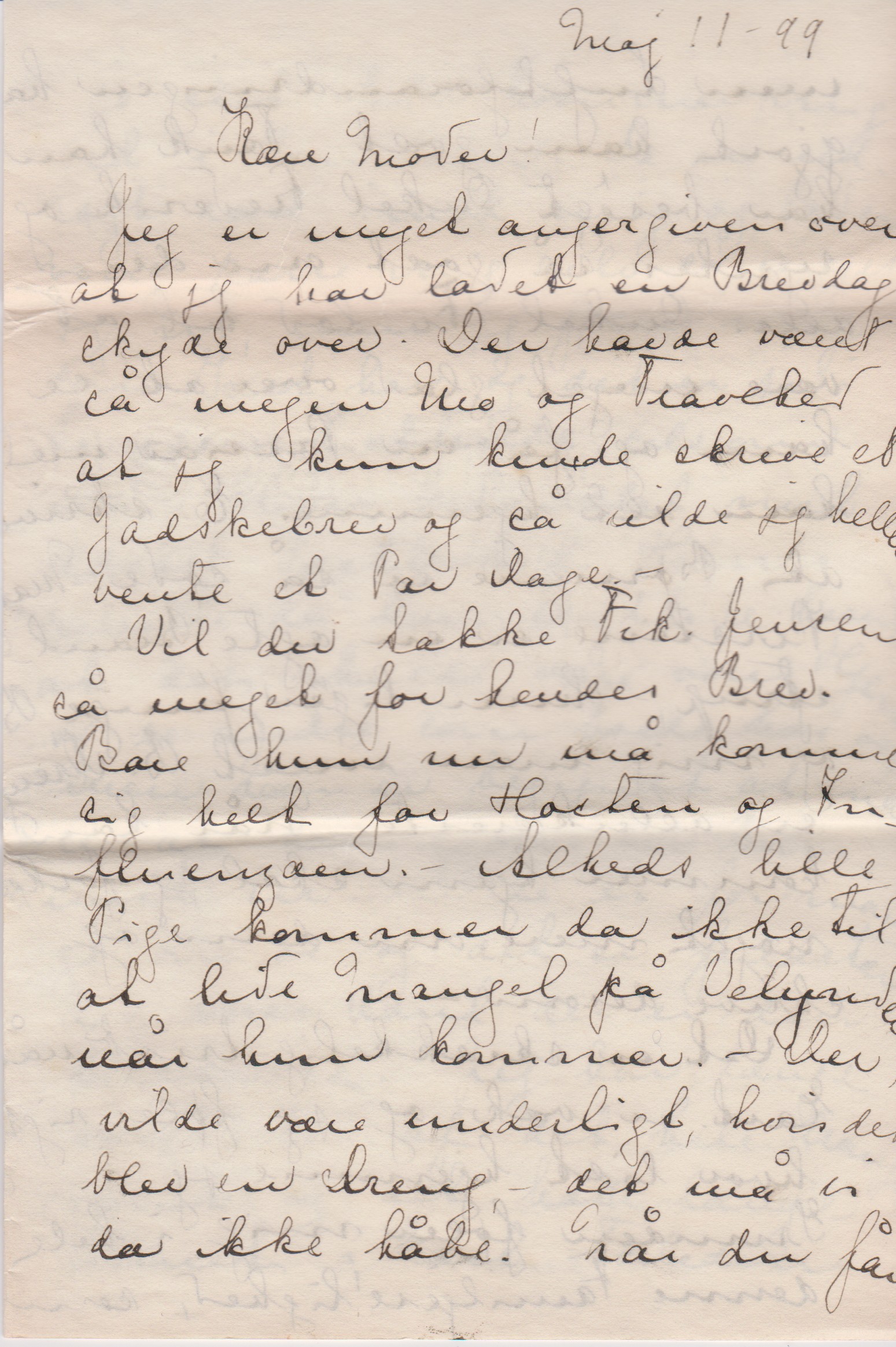 Jeg er meget angergiven over at jeg har ladet en Brevdag skyde over. Der havde været så megen Uro og Travlhed at jeg kun kunde skrive et Gadskebrev og så vilde jeg hellere vente et Par Dage. –