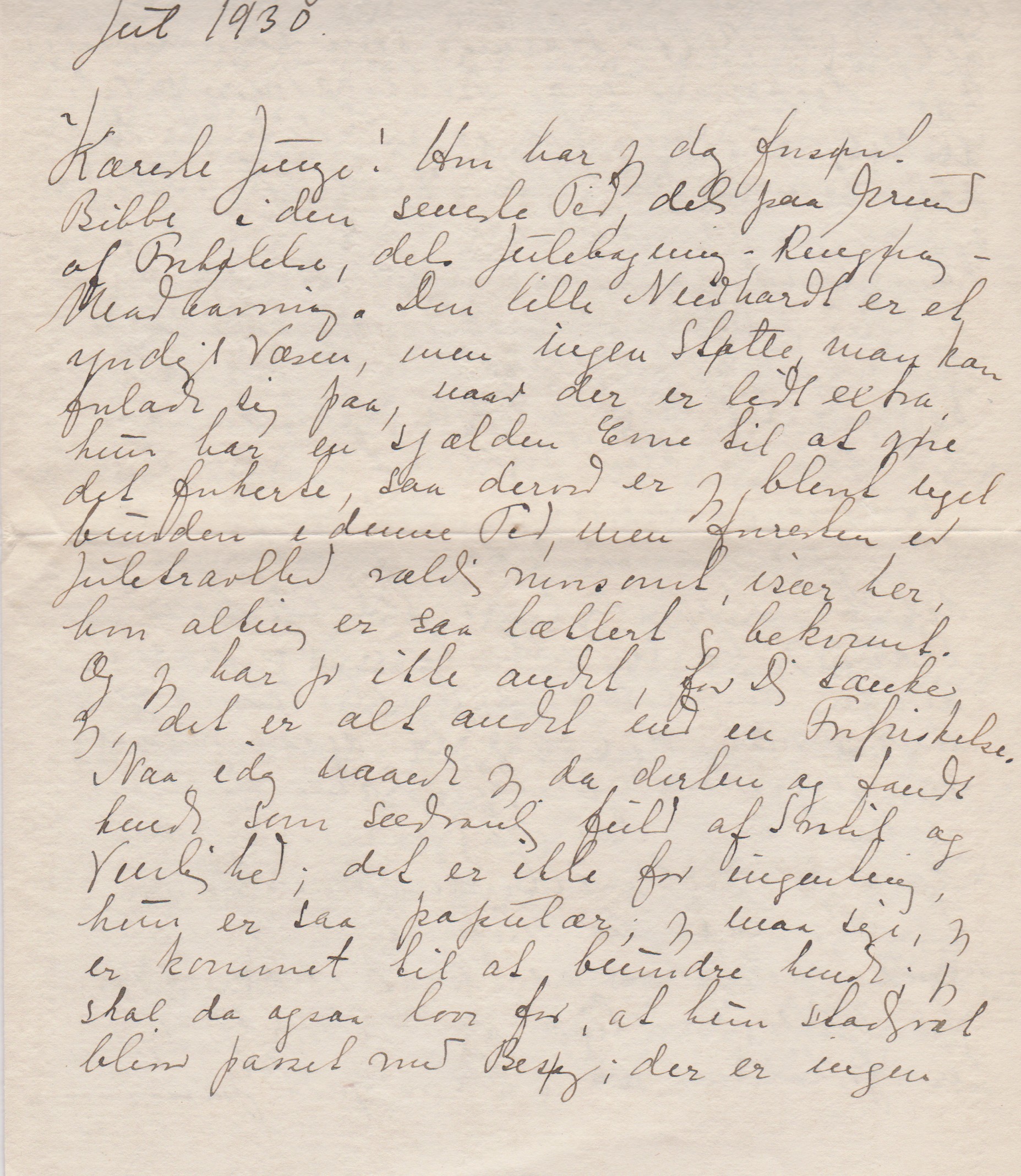 Brevet er kun dateret "Jul 1930". Den præcise dato kan ikke udfra brevets indhold fastsættes.